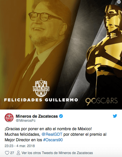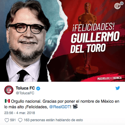 El fútbol mexicano se volcó a felicitar a Guillermo del Toro por su triunfo en los Premios Oscar