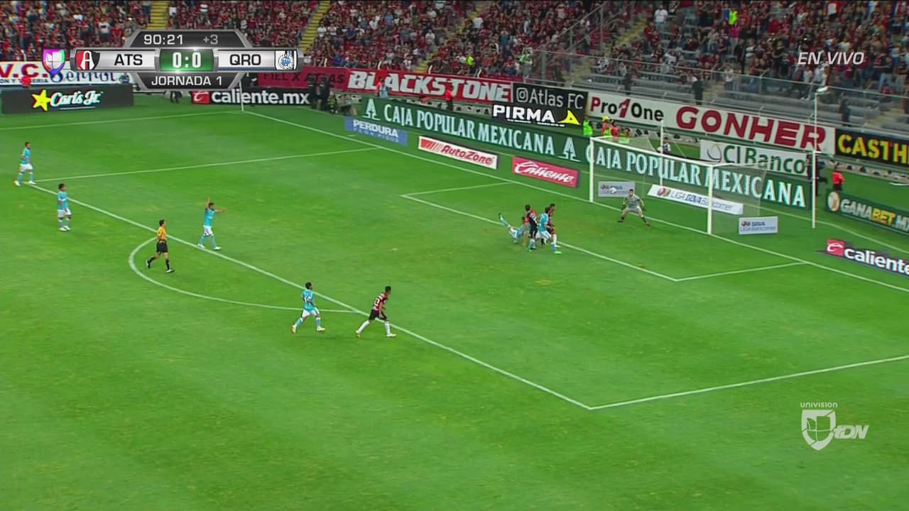 Rivero remata con la cabeza y culmina en las redes pero se anula por falta sobre un defensor de Gallos.