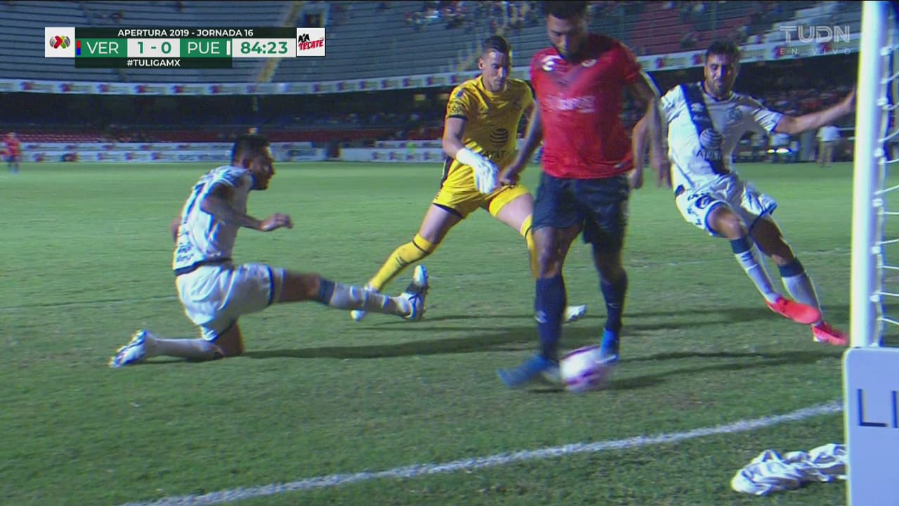 El delantero de Veracruz metió el taquito, pero en la línea salva Néstor Vidrio a Puebla del segundo en contra.