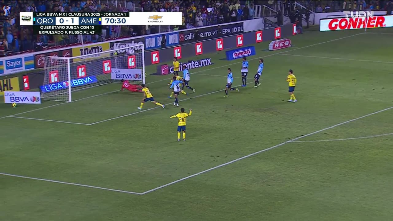 El centrocampista se pierde una oportunidad clara para aumentar la ventaja sobre el Querétaro.