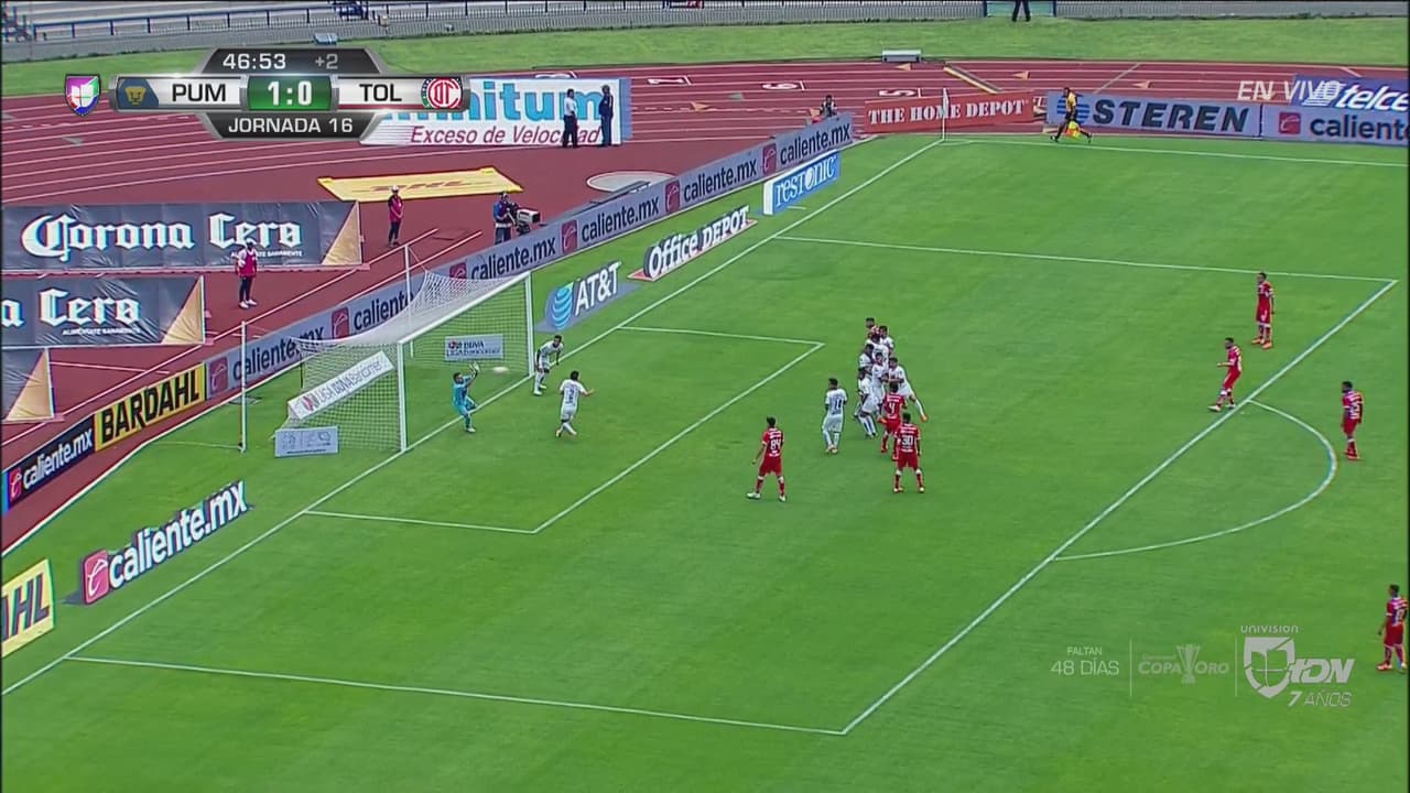 Pese a estar tapado por la barrera, el portero de la UNAM se sacó de encima un potente remate de tiro libre y le permitió a su equipo irse al vestidor con ventaja de 1-0.