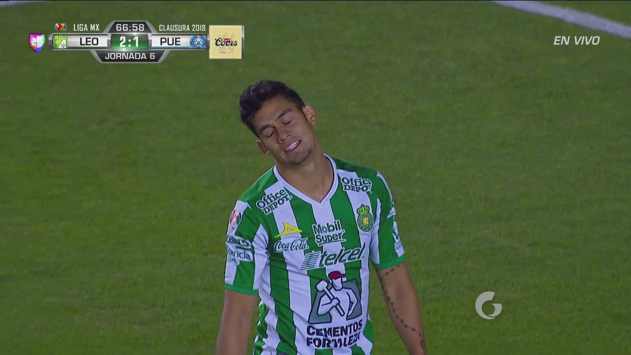 El atacante del León casi aprovecha una jugada accidentada para anotar el tercer tanto.