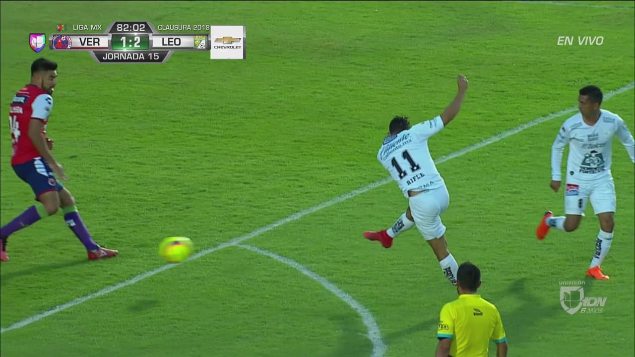 Andrés Andrade tomó un rebote tras un rechace a Elías Hernández y con un disparo cruzado puso el 2-1 para León sobre Veracruz, que ve en riesgo la permanencia.