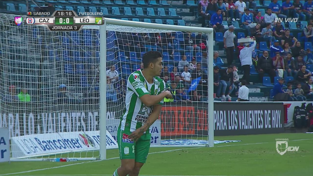 Andrés Andrade se metió al área por izquierda y mandó un disparo a segundo poste que atajó el portero de Cruz Azul, Jesús Corona. La 'Máquina' y León siguen 0-0.