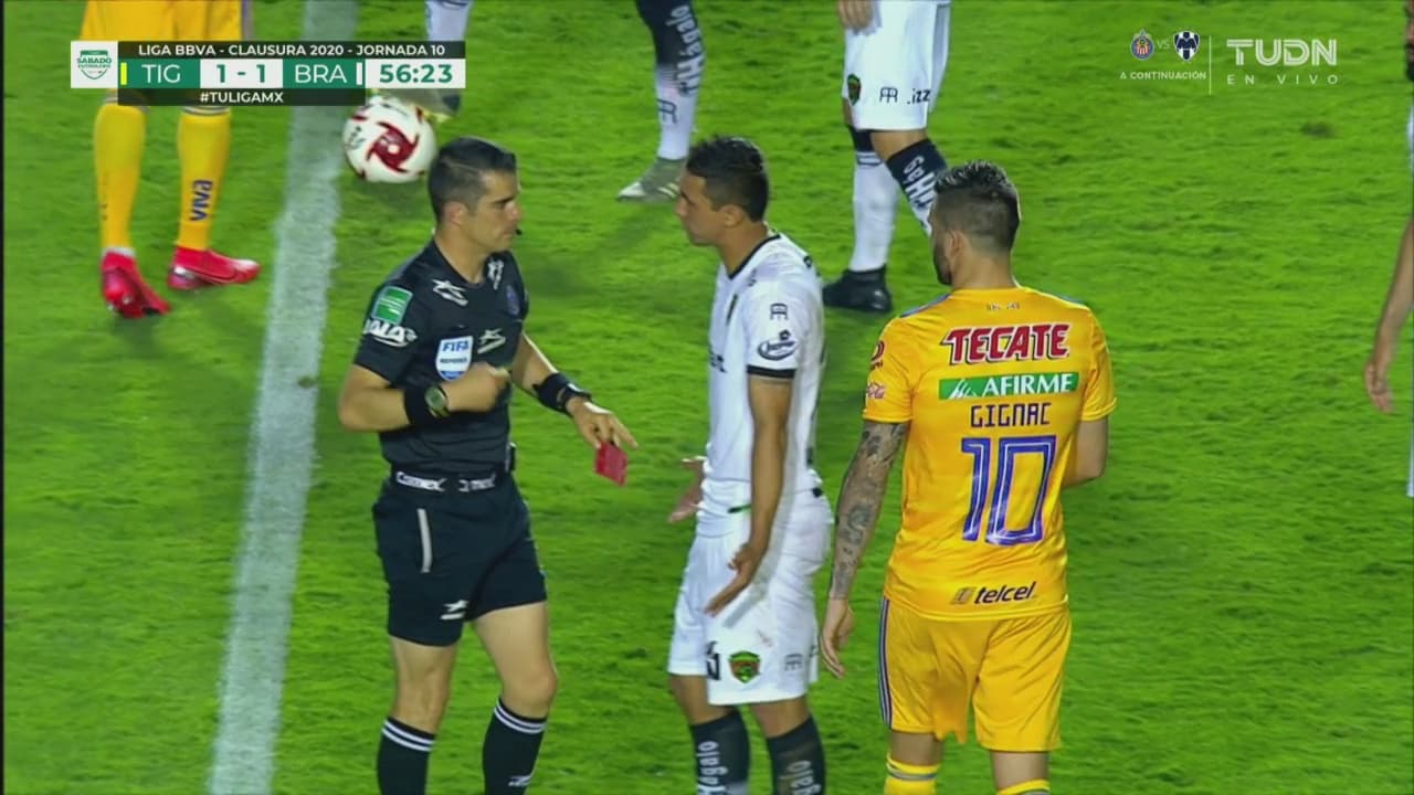 El árbitro recurre al videoarbitraje para dejar en tarjeta amarilla la falta sobre José Esquivel.