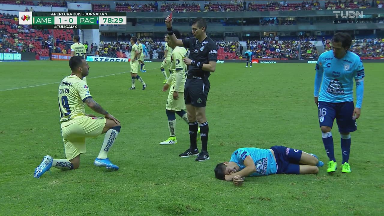 El defensa de las Águilas se lleva la segunda tarjeta amarilla y se va antes a los vestidores.