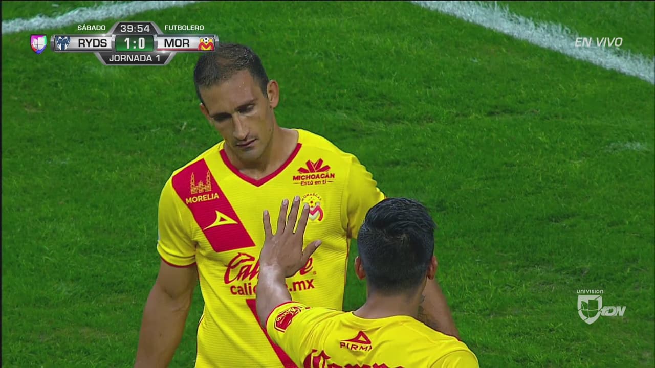El defensa de Morelia remató de cabeza frente a la portería de Hugo González, sin marca y con todo para anotar, pero el balón pasó desviado.