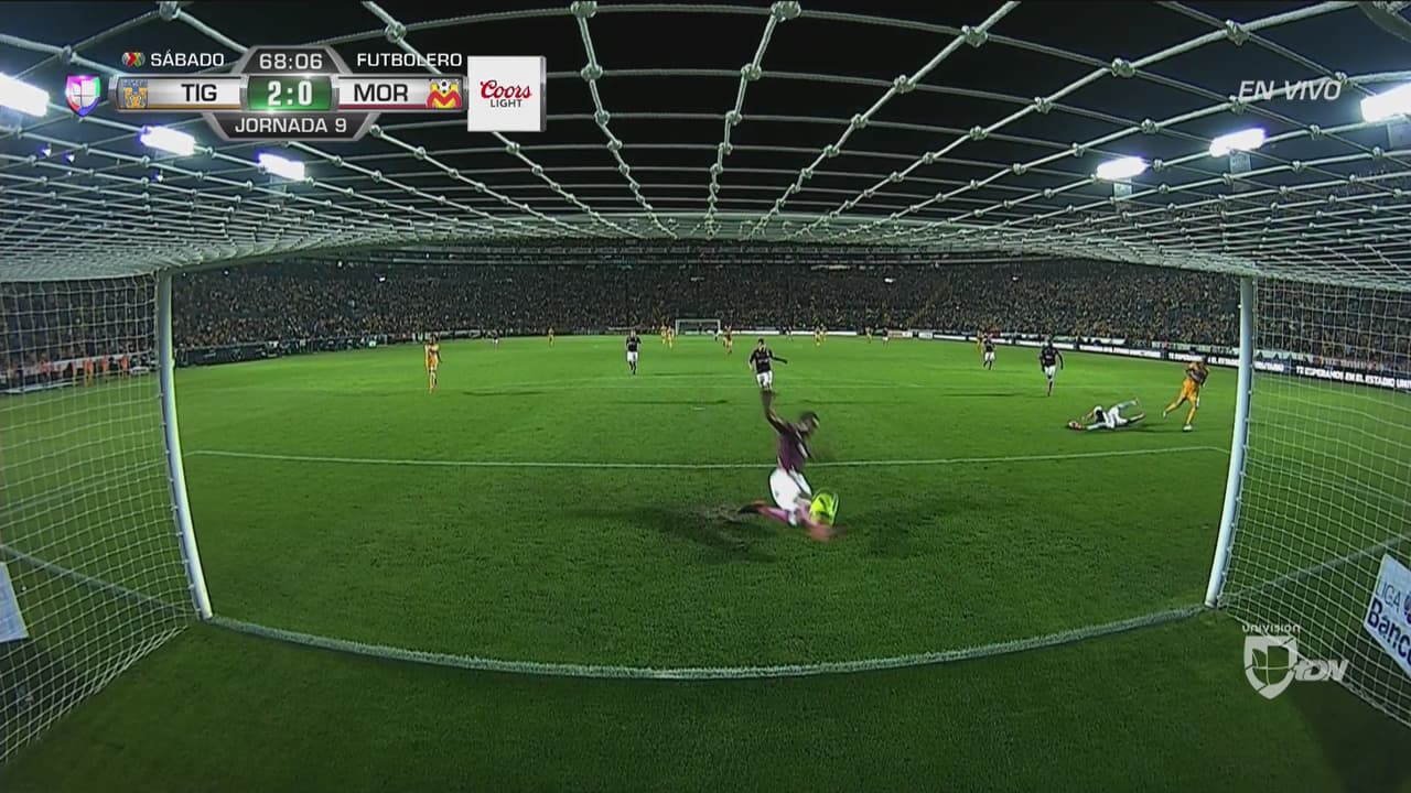 En una jugada espectacular, el argentino se cruzó antes de que el esférico se incrustara en las redes y salva a Morelia.