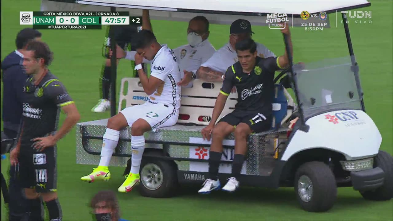 Emmanuel Montejano abandona el Pumas ante Chivas por lesión