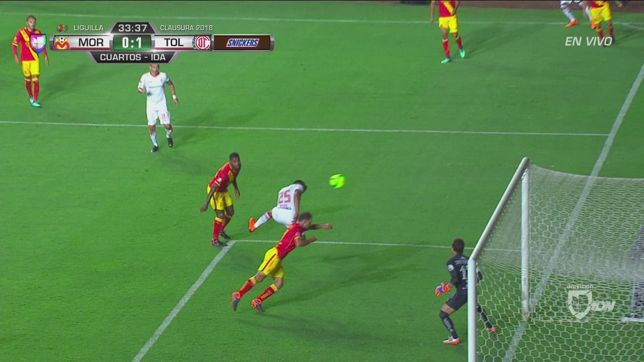 ¡CERCA! (33’) | ¡Canelo te movieron el arco! El cabezazo que se va desviado.@FuerzaMonarca 0-1 @TolucaFC #MORvsTOL