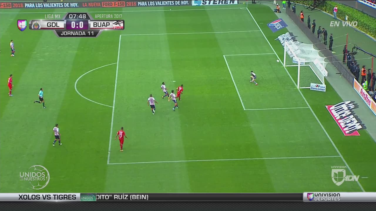 En un tremendo contragolpe de Lobos BUAP, el contención de las Chivas estuvo cerca de mandar la pelota al fondo de su propia portería.