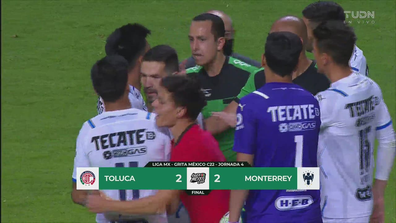 Los jugadores de Rayados le reclamaron airadamente al silbante por marcar el penalti que les costó el empate en Toluca.