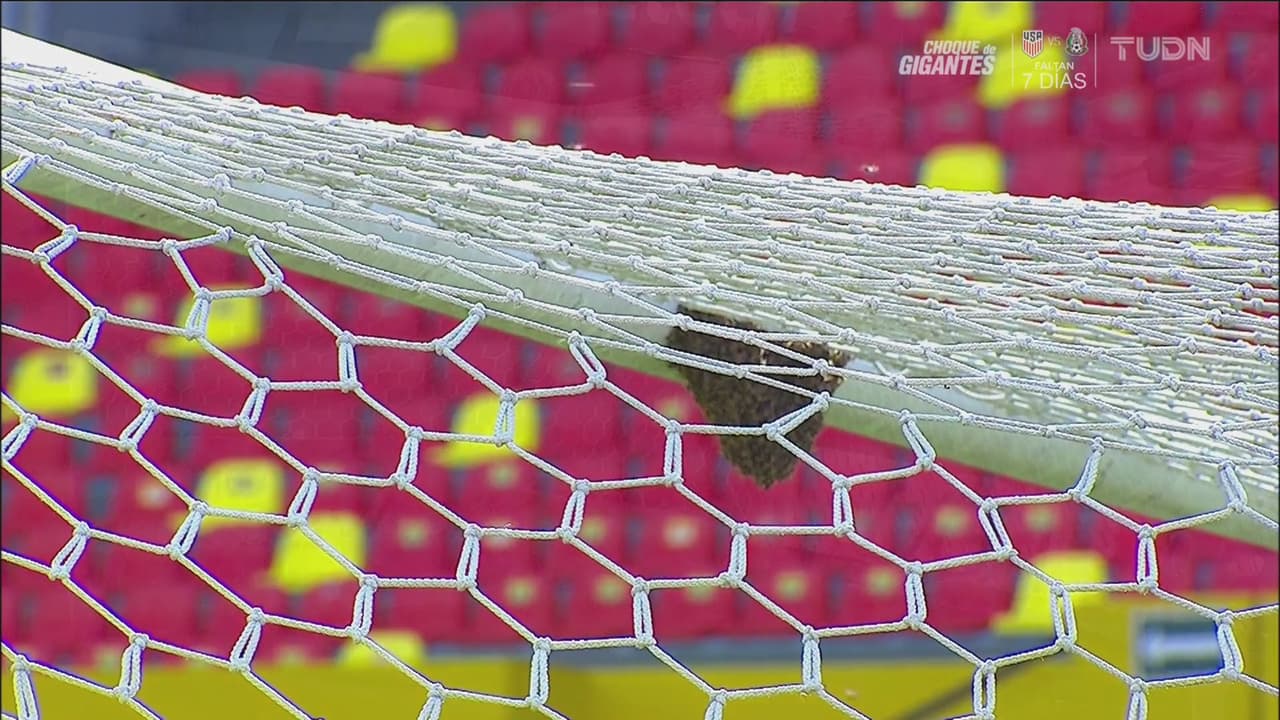 Las abejas se posaron sobre una de las porterías del escenario en el que jugarán hoy Morelia y Veracruz.