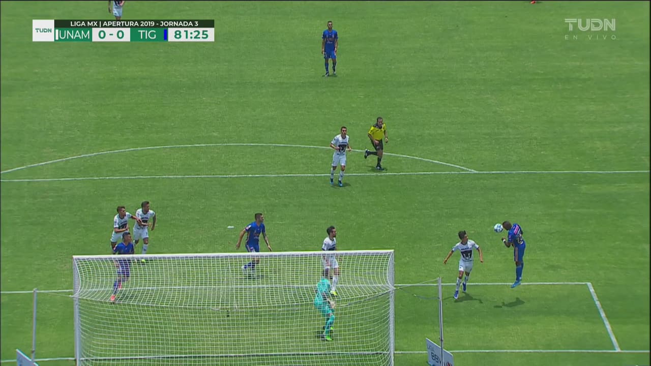 Valencia quiso rematar de cabeza de forma picada y terminó por mandar el balón por un costado del arco.