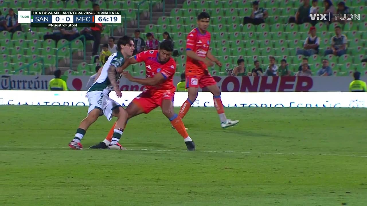En una jugada en mediocampo el jugador de Mazatlán entra a destiempo y casi rompe al delantero mexicano.