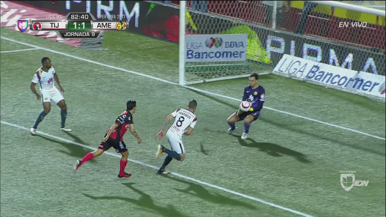 El hombre de más que tiene Tijuana en el terreno de juego pone contra las cuerdas a las Águilas, que gracias a una nueva atajada de su arquero y posterior salvada sobre la línea de da Silva, mantiene el 1-1.