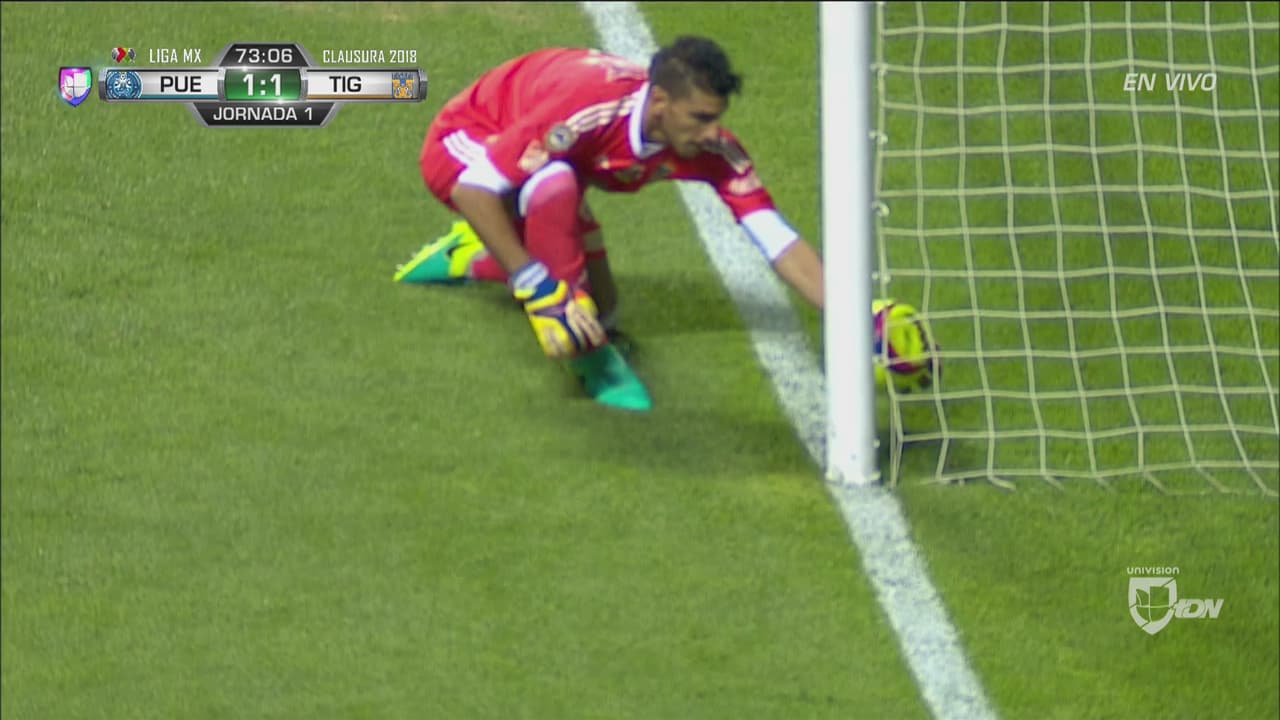 El portero de Tigres estuvo a punto de regresar el favor al Puebla y salvó en la línea aunque la polémica se desató.