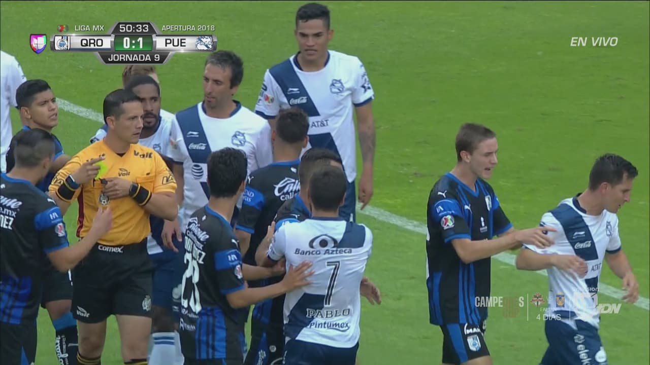 Casi se van a la manos, hubo empujones, gritos y al final tarjetas amarillas para Daniel Arreola de Puebla y Miguel Samudio de Querétaro.