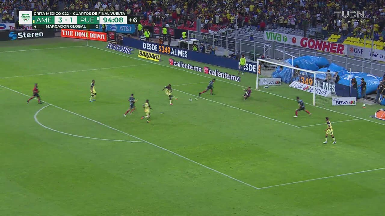 América arma bien la jugada, Miguel Layún da el pase y después el atacante perdona.