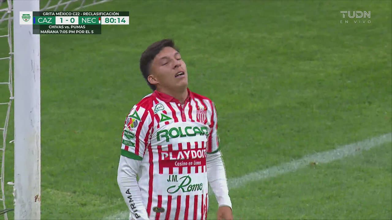 El jugador de Necaxa se perdió la oportunidad de igualar y mandó su tiro a la grada al 80’.