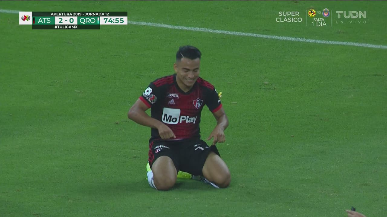 El jugador de 19 años aprovecha un gran cambio de frente de Jesús Angulo y en velocidad dispara por encima del arco de Querétaro.