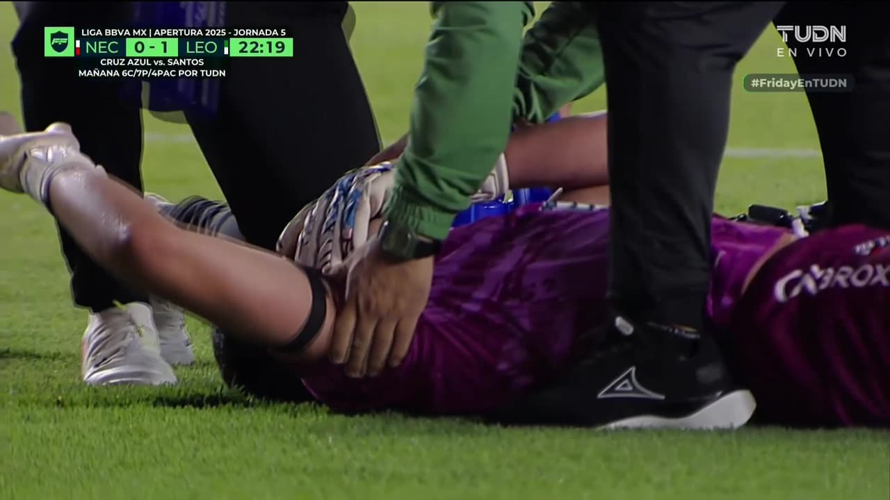 El delantero del Necaxa se lleva la tarjeta amarilla tras la dura acción.