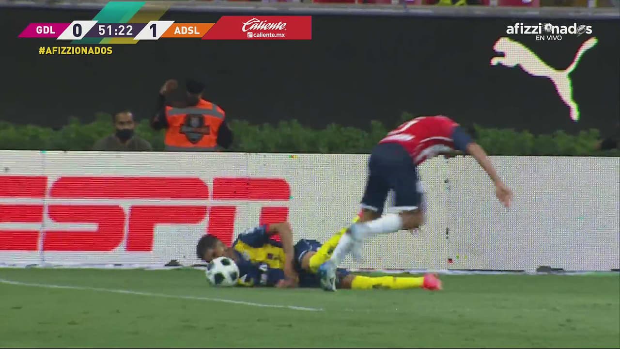 El defensor de Chivas frenó el embate de San Luis y los rivales pedían la pena máxima al 50’.