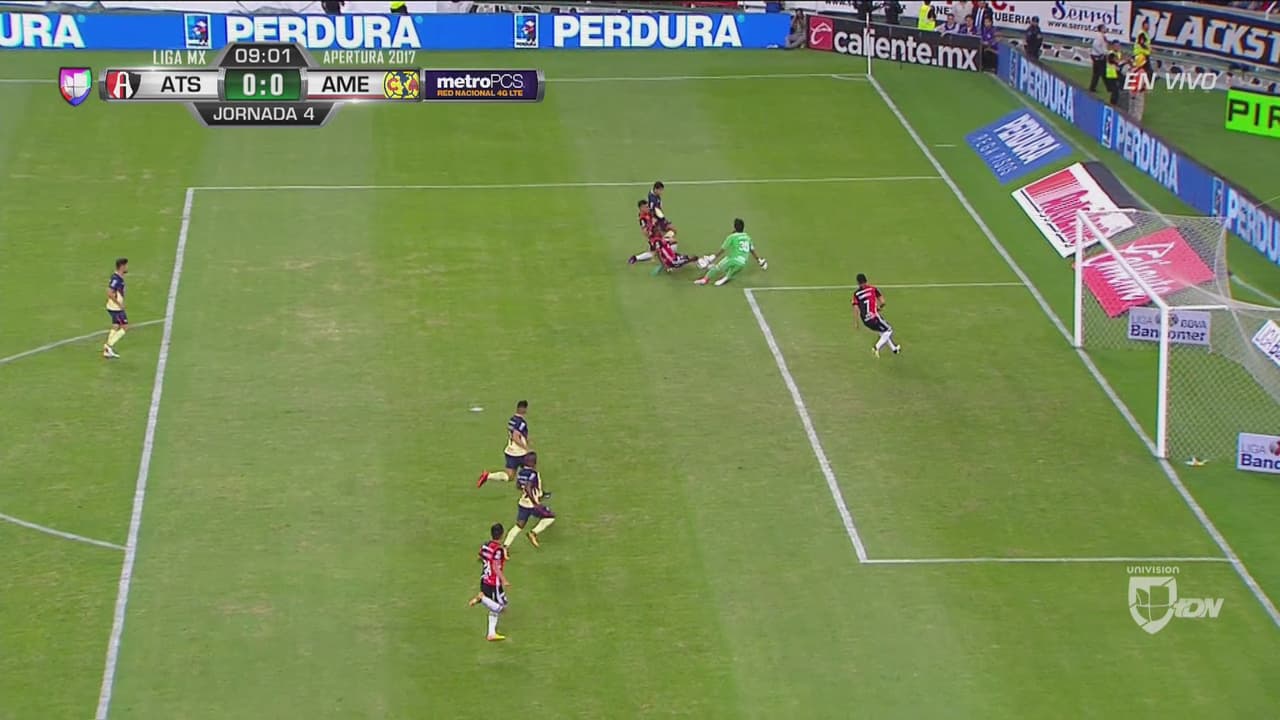 Error garrafal del Atlas en defensa y Cecilio Domínguez por poco anota para el América