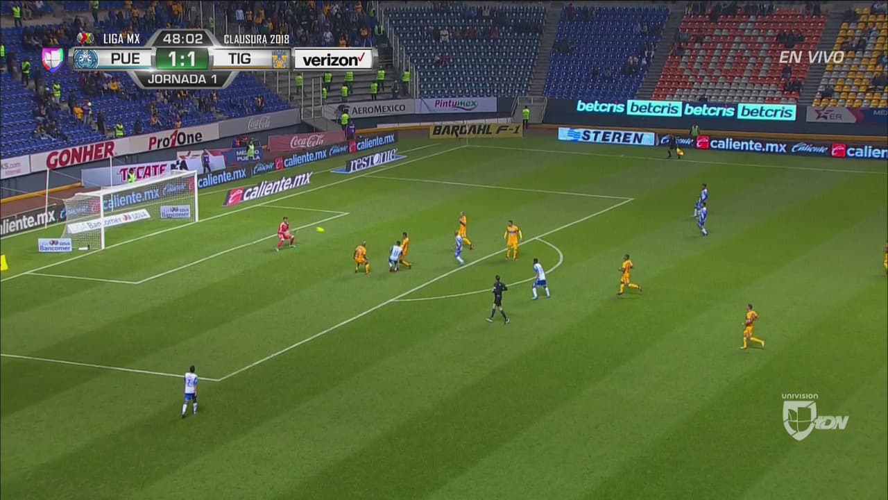 Buen disparo de Tabó que iba al ángulo, pero el portero de Tigres se lanzó y rechazo de forma milagrosa para evitar el 2-1.