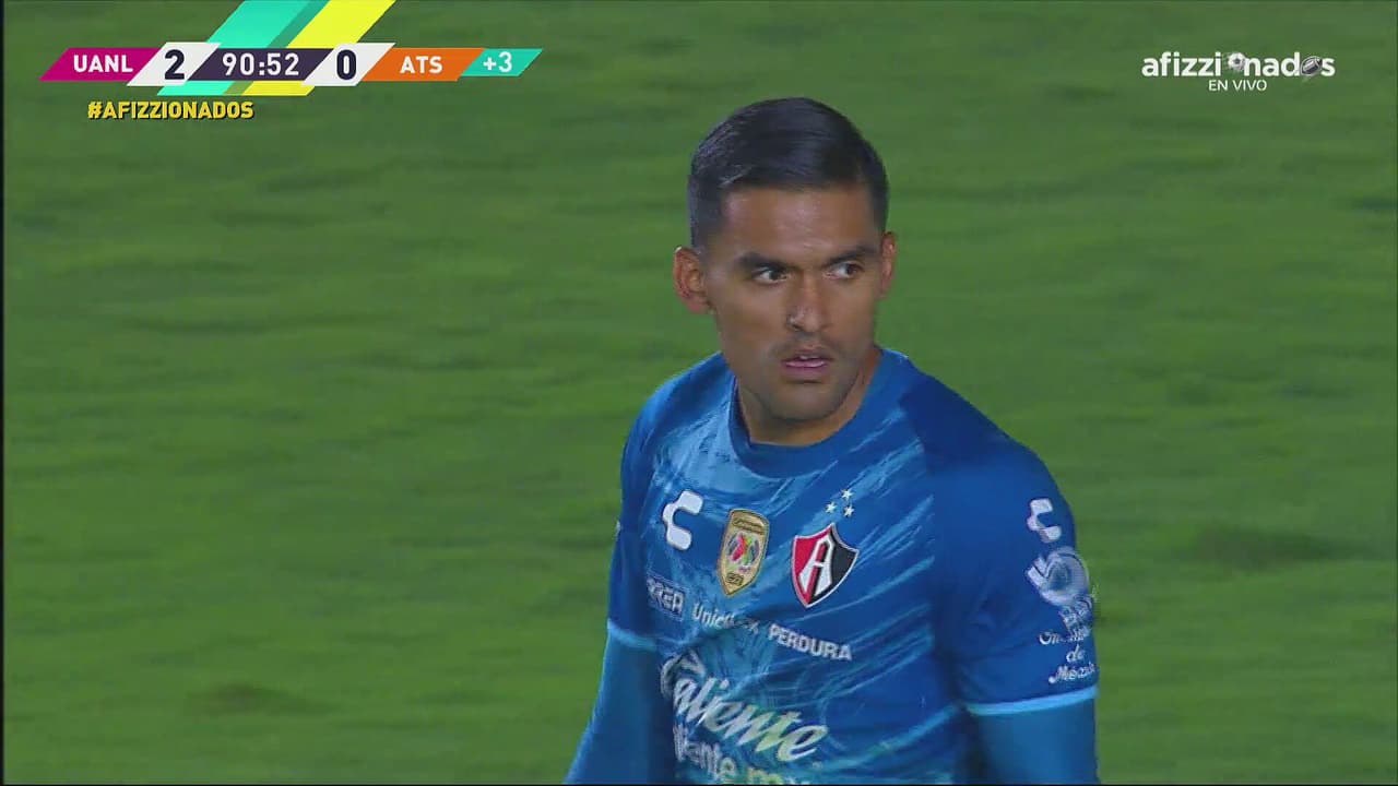El francés sacó riflazo de fuera del área y el portero rojinegro se lanza para evitar el gol de Tigres al 90+1’.