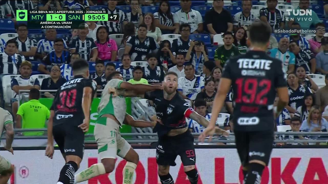 Anthony Lozano (Santos Laguna) ha visto tarjeta roja por pelearse.
