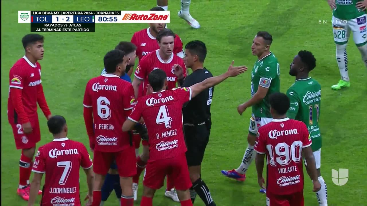 Bruno Méndez (Toluca) ha visto tarjeta roja.