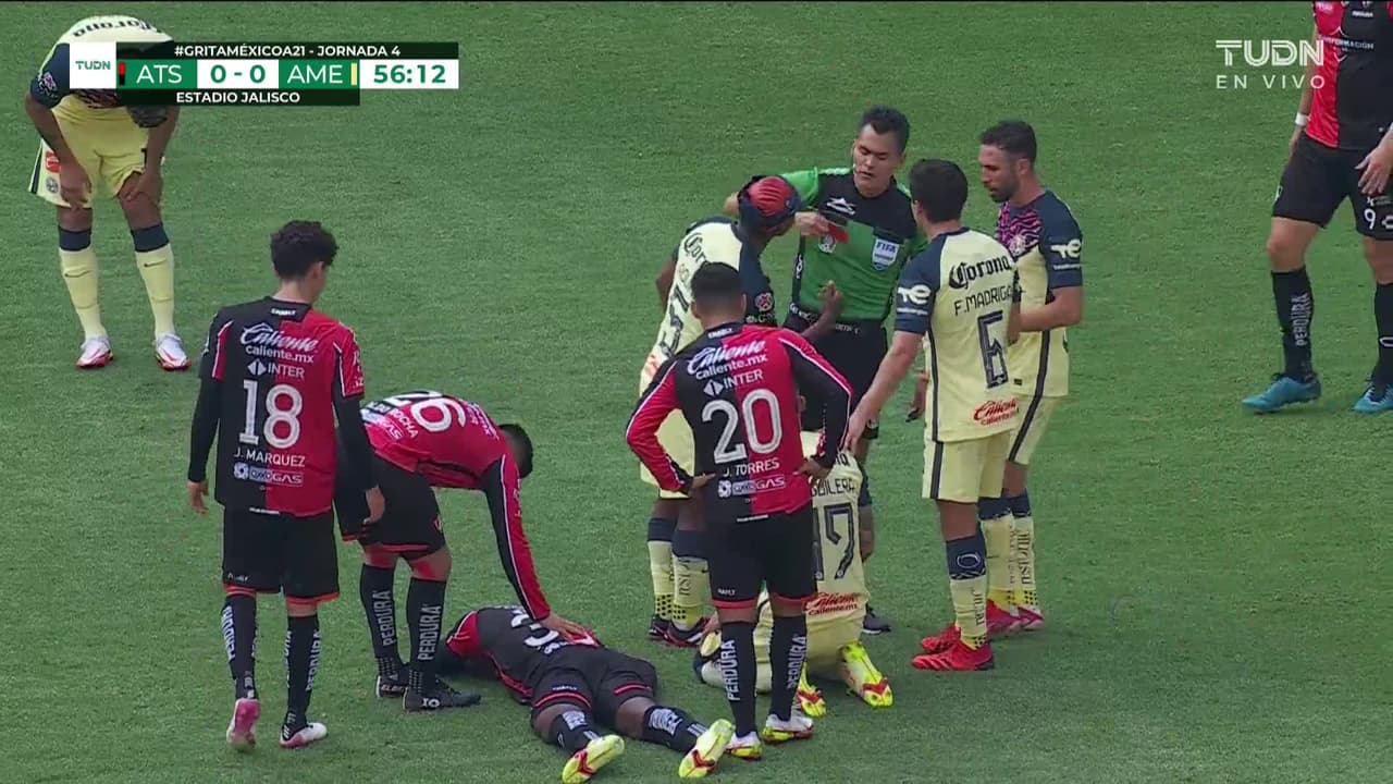 Emanuel Aguilera (América) ha recibido una tarjeta roja por pelearse.