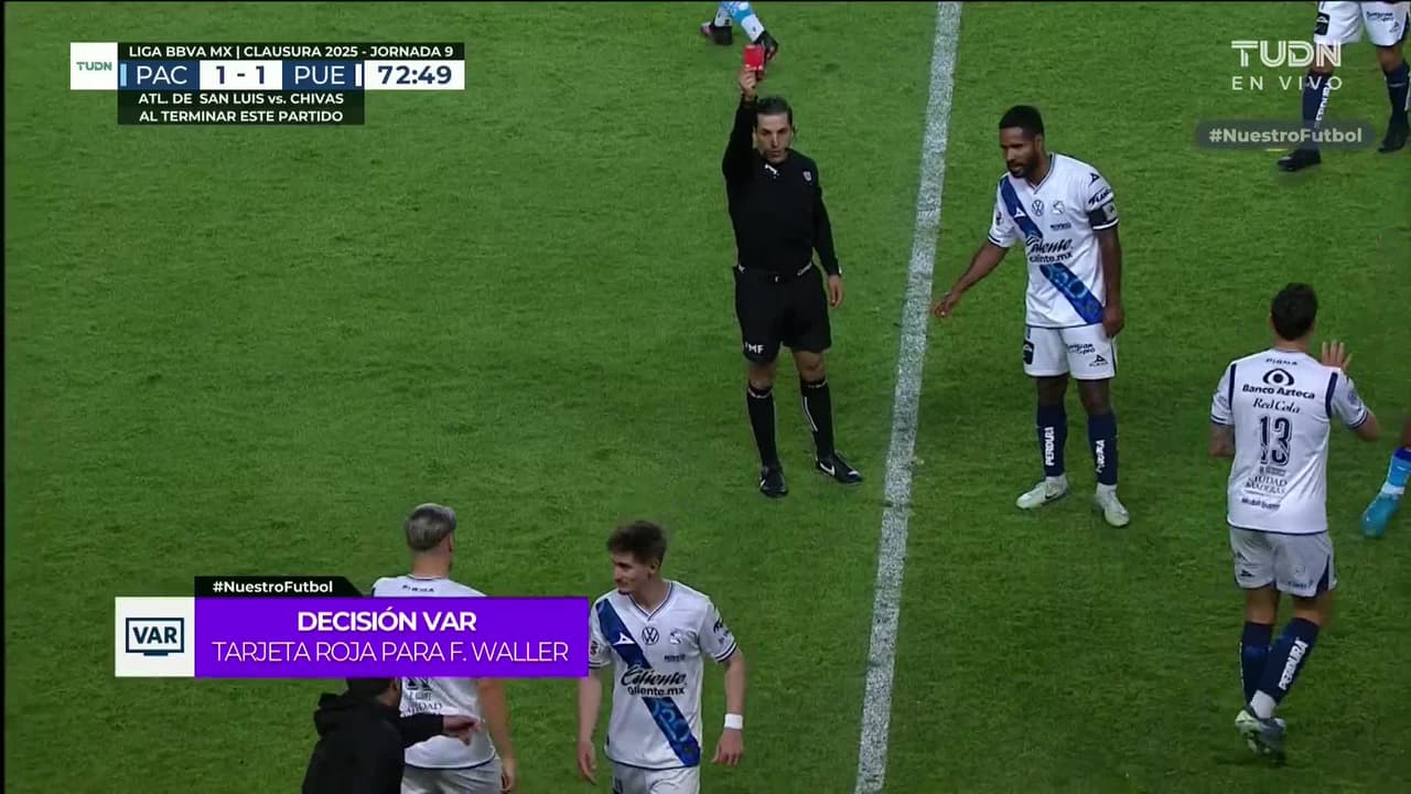 Facundo Waller (Puebla) ha visto tarjeta roja por pelearse.