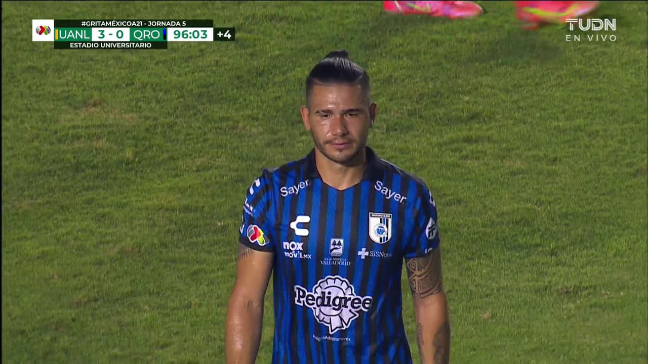 Jonathan Dos Santos (Querétaro) ha recibido una tarjeta roja por pelearse.