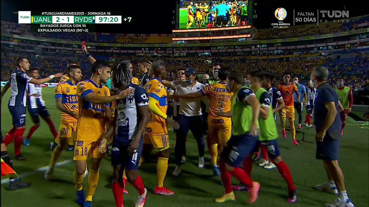 Rafael Carioca (Tigres) ha recibido una tarjeta roja por pelearse.