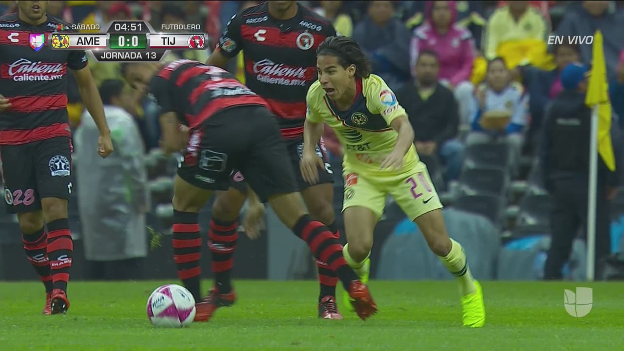El argentino quiso quitar el pie antes de cometer falta pero los zapatos de ambos se quedaron pegados y terminó por derribar al americanista.