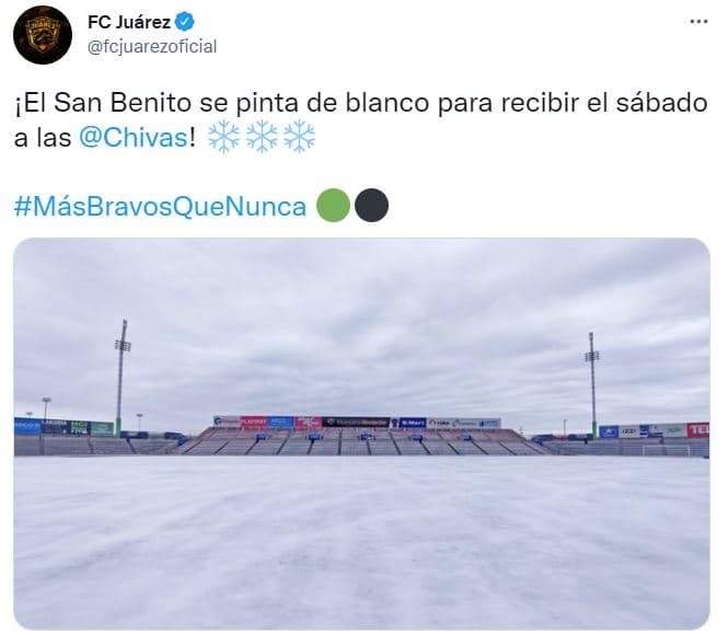 Los Bravos subieron una imagen del estadio Benito Juárez repleto de nieve en donde también mencionaron que así recibirán al Rebaño Sagrado.
