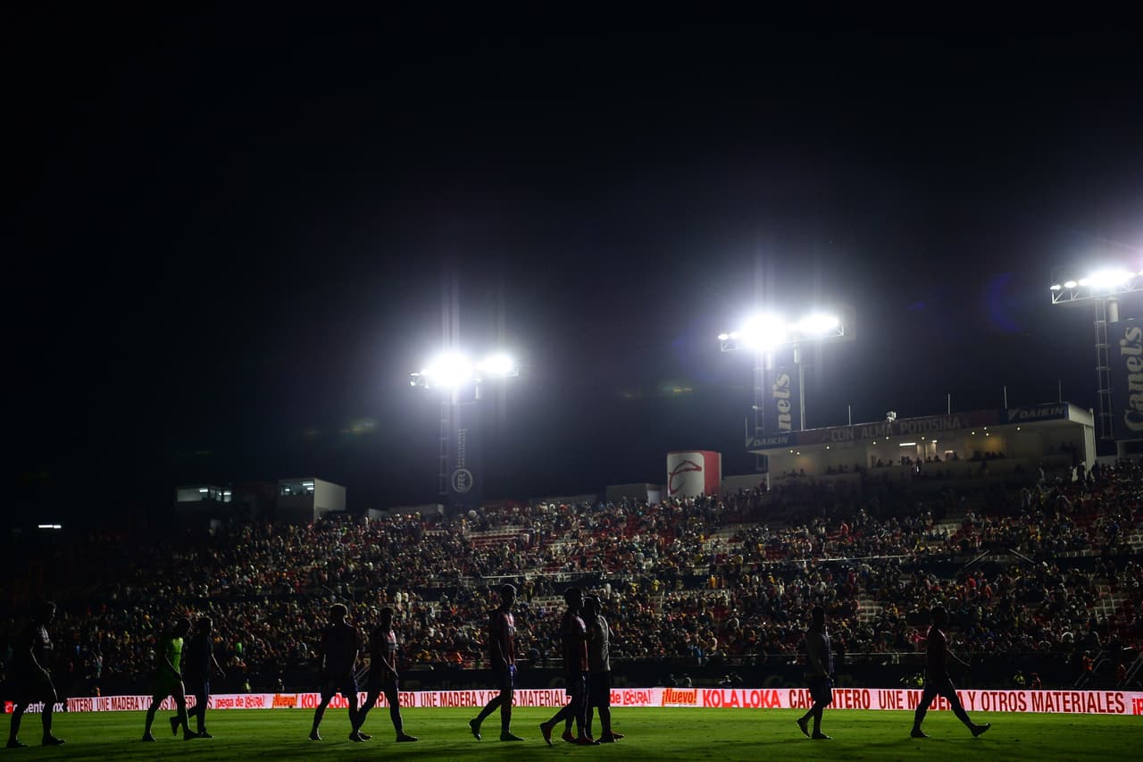Después de 12 minutos de las fallas eléctricas, el cuerpo arbitral y ambos equipos abandonaron la cancha con rumbo a vestidores del estadio.