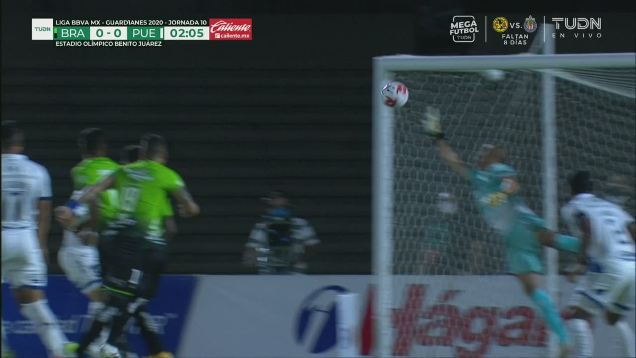 Puebla no fue a pasearse y también buscaron puerta ajena, pero Enrique Palos se estiró para evitar en varias ocasiones que la pelota entrara en su arco.