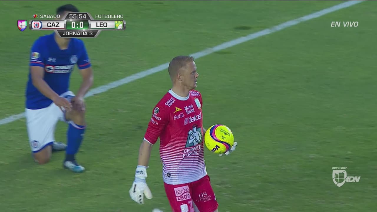 El atacante de Cruz Azul Felipe Mora recibió un envío preciso de Ángel Mena, pero su volea en el área fue descompuesta y a las manos del portero de León.