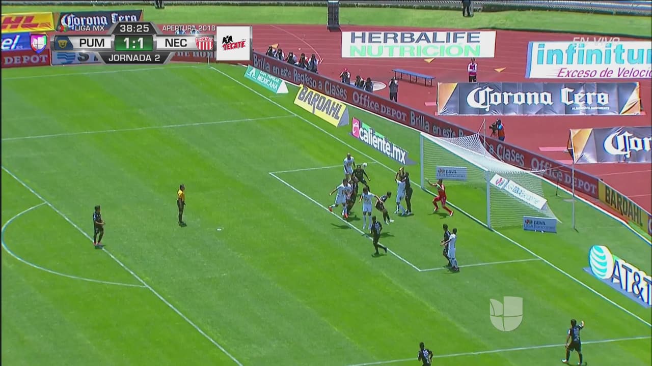 ¡Cerca, cerca, cerca! Mora se quedó a poquitito de marcar por primera vez en C.U. con la camiseta de Pumas.