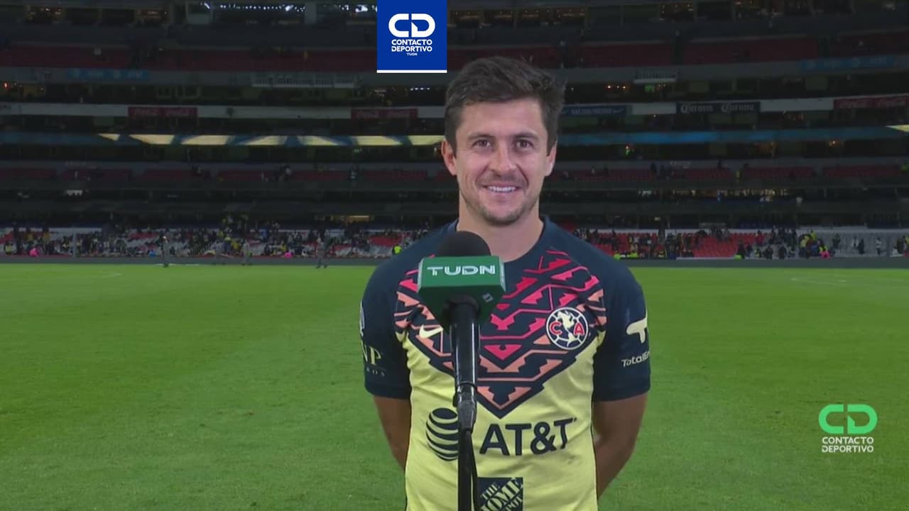 El volante del América habló luego de marca, tanto el gol de la victoria como su primera anotación vistiendo los colores azulcremas.