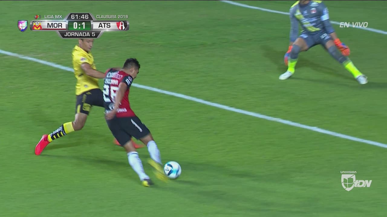Triangulación en el área que termina con bombazo de Jesús ’Ratón Isijara, el balón se desvía en Emanuel Loeschbor, pega en el palo y se mete en el arco de Sosa. Morelia 0 – 1 Atlas.