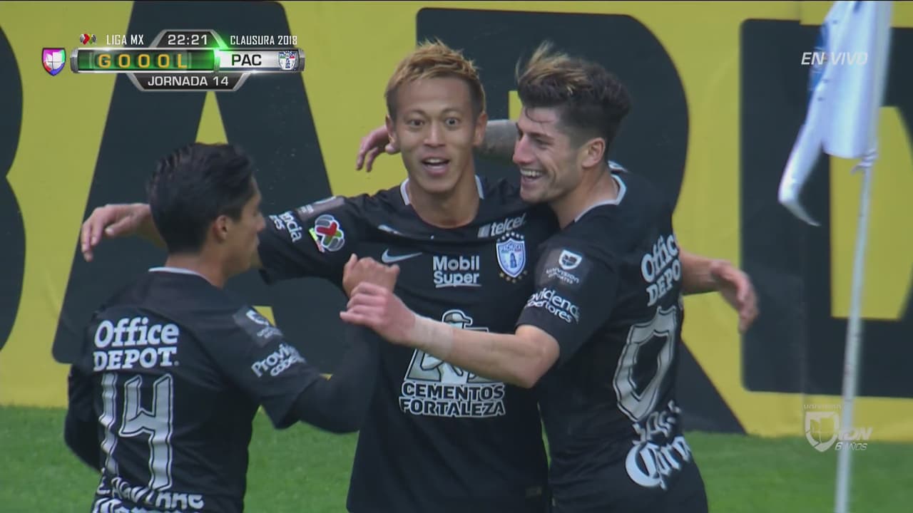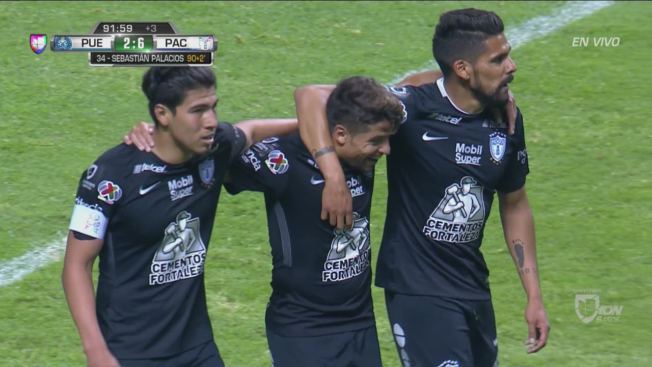 Con una estupenda actuación de Sebastián Palacios, que marcó cuatro goles, y de Keisuke Honda, con dos, los Tuzos golearon a domicilio a La Franja y ya están en zona de Liguilla.