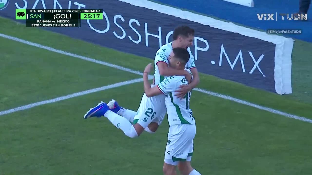 ¡Santos pega primero! Bullaude define de forma cruzada y abre el marcador