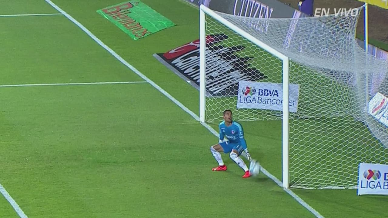 Derechazo potente de media distancia que dejó petrificado a ’Pepe` Hernández, que solo quedó para mirar como el balón pegaba en el palo más largo de su portería.