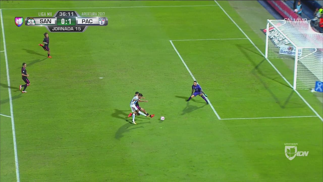 Franco Jara la estrelló en el poste y Santos se salvó del segundo