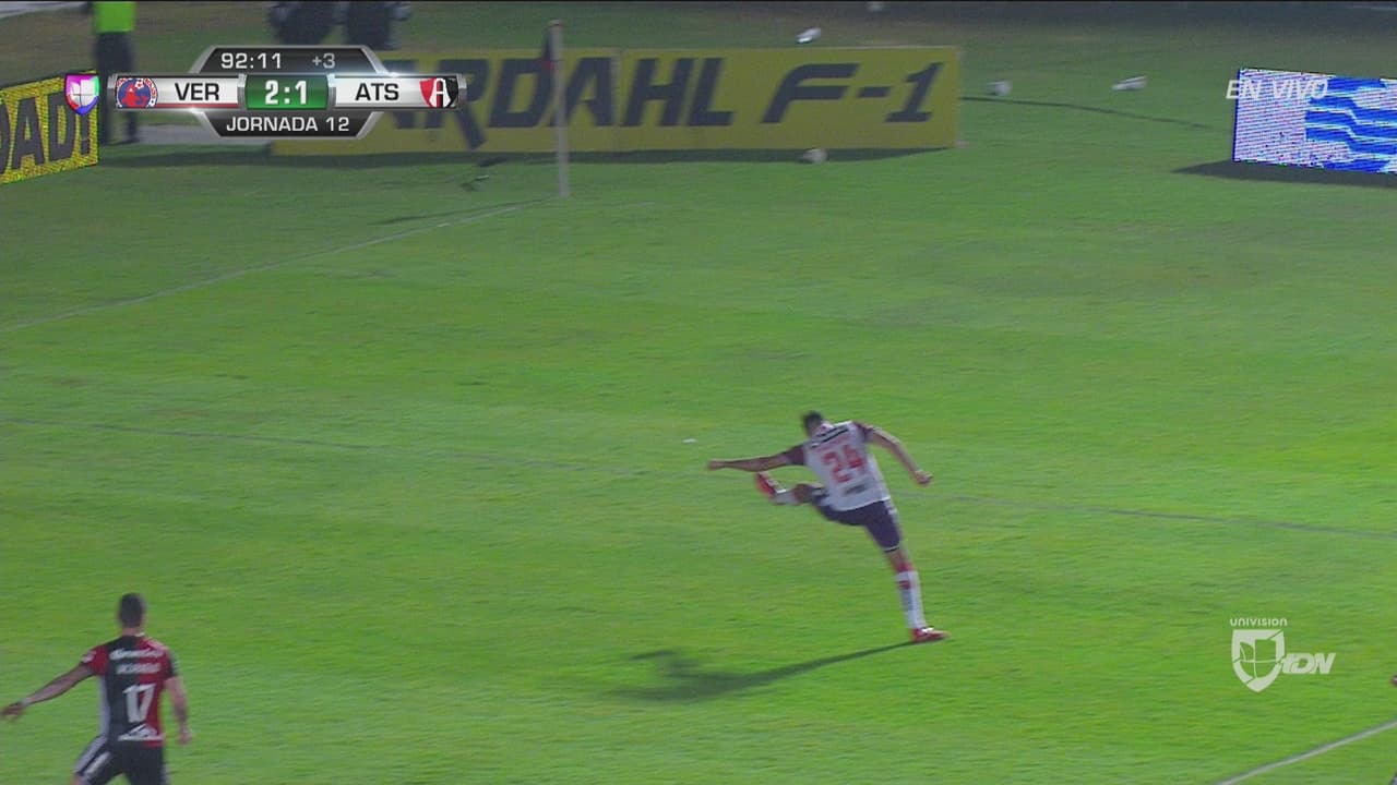 José Rivas de Veracruz metió el brazo, a dos minutos del final, para evitar el ataque de Ángelo Henríquez.