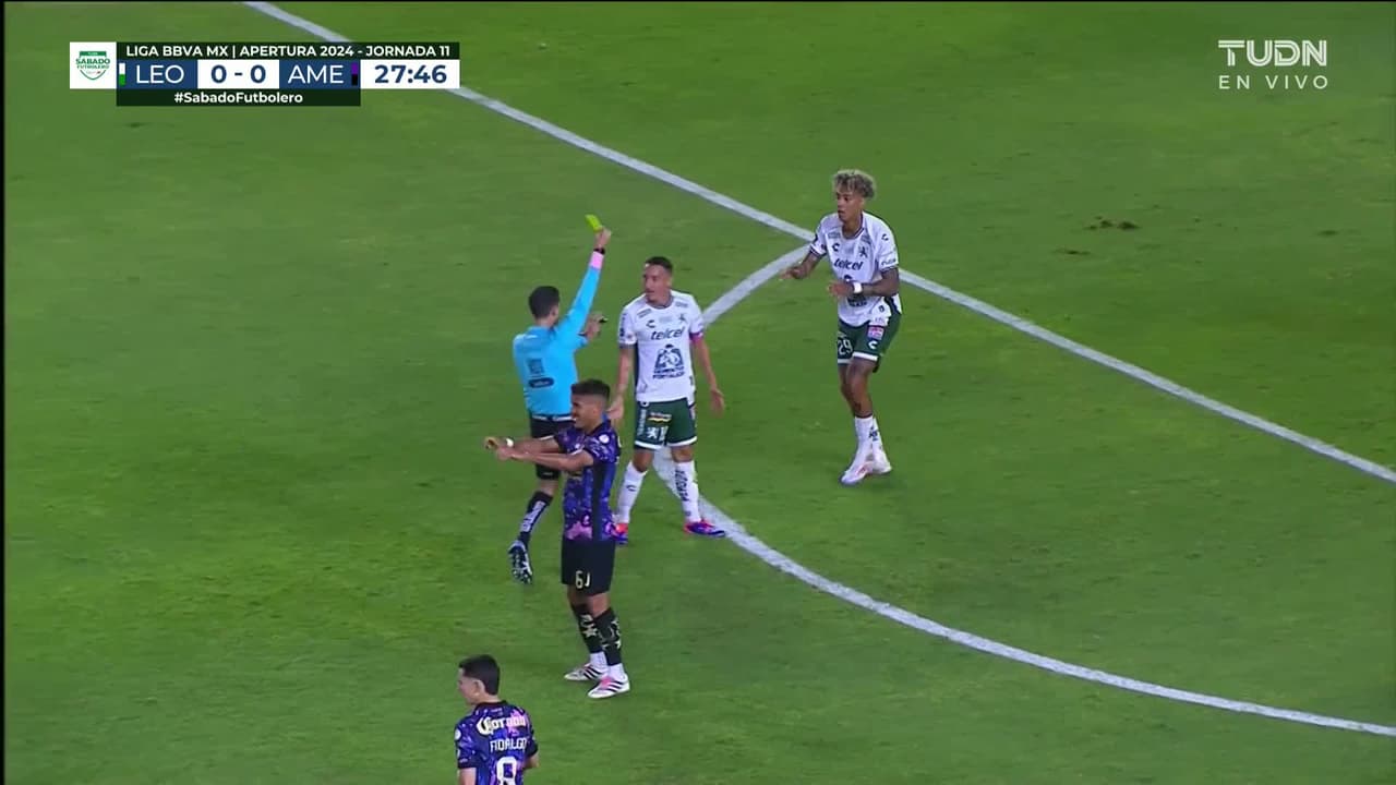 ¡Fuerte entrada de Jhonder Cádiz! Juego peligroso del futbolista de León